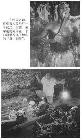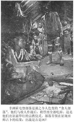 在非洲的南部地帶,威爾遜等人与分布在此的霍屯督人生活了一段時間。 霍屯督人屬游牧民族,居住的環境多是干燥而涼爽的地方,季節性比較明顯,夏季炎熱,冬季也能見到霜花。因而水在霍屯督人當中顯得十分重要。他們的地區盡管雨水不多,但仍可見到郁郁蔥蔥的綠色海洋,為他們放牧提供了天然草場。他們飼養一种角非常大的牛,多毛的肥尾羊和狗。牛在霍屯督人的社會生活之中,占有很重要的位置,除牛奶是他們的主食之外,牛也是他們重要的運輸工具。霍屯督的狩獵工具非常簡單、原始,狩獵方法頗多但都十分落后。 威爾遜在這里了解到,霍屯督人最基本的社會經濟單位是家庭,并由若干個家庭組成一個父系氏族,每個父系氏族組成一個部落。每個部落都有自己的名稱和酋長。有的部落以自己的祖先命名,有的根据地理環境和物体命名。每一個部落在地域上并沒有明确的划分,主要以原有水源、原有草地,來維持他們的生活。水源就是他們的財產。 威爾遜、維納開始小心翼翼地接近這些霍屯督人,力求在他們身上發現一些特別之處。然后再向他們了解一些有關食人部落的傳聞和消息。有几個父系氏族,相對強大,較有影響的氏族是孕育酋長的氏族,酋長由該氏族產生。酋長得到眾多人的認可和尊重,并与其余的氏族首領組成部落會議,酋長按父系由長子繼承,如沒有儿子則由酋長的兄弟或兄弟的儿子繼承。無論如何,這一權力絕不傳給婦女。繼承人是任何人無權爭奪的,就是酋長也無權剝奪其繼承權。當然酋長有權自愿將自己的職位讓給繼承人,酋長与普通老百姓之間來往沒有任何清規戒律。