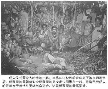 這里生活著的人叫蒙杜古馬人。威爾遜5人在此真正目睹了食人部落的真相。他們的習俗,他們的生活方式讓威爾遜等人大為惊詫,出乎意料。 喻阿特河是塞比河的一條支流,水流湍急,變幻莫測,土著人從來不在河里游泳,因為水色污濁,常有浮在水面上的樹枝、樹干、土塊,倏然而過。土著人告訴威爾遜他們:有時在河上看到的樹皮裹成的包包里面興許還裹著新生的嬰儿,還沒來得及用水沖洗就給扔到河里去了。對于一個缺乏干土的國家來講,這里不失為种植椰子和煙草的适宜之地,但蒙杜古馬人使人聞風喪膽,沒有哪個部落敢占領這塊土地,因為蒙杜古馬人獵取人頭的隊伍常出沒于此,去進攻喻阿特河口的安度阿人。這些人同蒙杜古馬人一樣,也獵人首級,也吃人肉。 蒙杜古馬部落鼎盛時期人數多達1500万左右。蒙杜古馬部落分成兩個部落,兩個部落分布在喻阿特河兩岸,他們雖然操同一种語言,卻互相攻擊。自從河流干預了他們的生活后,兩個群体在生活方式上差异极大,于是沿河居住的人破禁吃了住在叢林里的人,后來越吃越厲害,成了食人的部落。兩個部落間聯姻日漸減少,沿河而住的四個村落只好內部通婚,偶有抓來的女人正好与一些男人婚配。 蒙杜古馬人看不起那些可怜巴巴的栖居在沼澤地帶的人,但他們卻又要依賴于他們的鍋、籃子,因為蒙杜古馬人不會制造鍋和籃子,因而留著他們還有些用處。有時,蒙杜古馬人同沼澤地帶的人臨時結盟,拉上一幫子人去獵取其他部落的人的首級。他們与鄰近部落以互換儿童作為人質,達到結成臨時性聯盟的目的。用來作人質的總是孩子,聯盟中一旦出現叛逆行為,人質即被殺掉。 威爾遜他們在新几內亞生活了几個月,對蒙杜古馬人与沼澤地帶人的生活有了許多了解,兩個部落的古怪而令人費解咋舌甚至膽顫心惊的生活方式,使探險者們產生一种恐懼心理,隨時有可能被蒙杜古馬人當成沼澤人而吃掉,露絲隨時有可能成為蒙杜古馬人男人婚配的對象。 威爾遜作為一名人類學家和探險家,對這种奇特的風俗習慣和殘忍桀驁的暴力倒是挺感興趣。 而一心只想發財的西斯科總想從兩部落的戰爭中獲得點什么,隨時都關注著兩部落的爭執。 一天,西斯科獨自溜出他們秘密搭建的木屋,想去“探險”尋寶。正巧當天蒙杜古馬人正与沼澤人大戰,村落里四處響起粗魯的野獸般的喝斥聲、小孩的哭喊聲,西斯科躲在大樹背后靜觀虎斗,心想“二虎相爭,必有一傷”,夢想從中獲得什么值錢的東西,卻不料被蒙杜古馬人發現。以為逆賊,要追而殺之,作為人肉吞食,西斯科惊慌逃竄,往住地木屋方向逃去,逃回到小木屋,卻發現露絲一人呆在屋內,獨不見威爾遜、維納与湯姆森。 這個被金錢迷昏了頭腦的西斯科,斷然沒有想到逃回小屋會給他們的生存及生命安全帶來多大的危險,一味地顧著逃命……一群獸性大發的蒙杜古馬人沖到小木屋門口,發現這里面居然還有一名貌美的白种女性,頓覺欣喜若狂,似乎是意外的收獲……西斯科早已被眼前這群神態古怪的食人族嚇得哆嗦到屋角,想到這回是命該歸西了,不禁嚇得高大的身軀已縮成一團,抖索著,眼光忽閃忽閃,想看清這群“野獸”的獸行,又怕看到“野獸”的眼光,一旦這群“野獸”的眼光轉向西斯科,西斯科便慘叫著把目光移開。 露絲也早已不知作反抗的准備了,對于這個手無縛雞之力的柔弱女子來講,在失去男人的庇護下只會變成一只可怜巴巴的羔羊,瑟縮著,恐懼著,蹲在牆根下,抱緊了膝蓋。露絲本就大病痊愈,身体無力,此時眼前的場景是平生頭一次親臨,雖說這几個月來她已見過不少這种“野獸”的各种不忍目睹的戰爭与殺戮,可那畢竟是在有男人庇護下躲在暗處窺探的呀,而眼前,是親身將要經歷,而西斯科在此時已算不得是個男人了。想起曾經見過的那种殘忍的殺人手段和殘忍的食人場景,西斯科几乎要昏倒在牆根。 露絲又何嘗不恐懼,作為一名剛從學校畢業的大學生,又特別是一名女生,涉世本來就不多,又何況面臨的是食人部落的人。就在這几個月中,露絲就想到過返回英國去,幸好有高大的威爾遜在自己身邊,還算沒有多大擔心,可現在,威爾遜呢?你在哪儿?這一群蒙杜古馬男人看到眼前這名可怜的“小姑娘”如此的狀態,倒更覺應該作一些男人應該作的事情,天生應該完成的使命。至于那個西斯科,這群“野獸”自然已將他忘記在角落里。 兩個粗魯的“野獸”徑直扑向露絲,可怜的“小螞蟻”被鐵臂似的手抓了起來……在“接受”了這群“野獸”的“作樂”之后,可怜的女人已奄奄一息,竟連自殺的力量都已被“吸”干。 然后,她被蒙杜古馬人帶出了小木屋,這群“野獸”本就保留著与沼澤人通婚的陋習,今天的意外收獲當然不會就這樣在一番快活之后放棄,那是更為他們的种族做點貢獻的事,于是,露絲被蒙杜古馬人抓走。 西斯科早已在這群“野獸”“作樂”之時,從小木屋背后的小后門怯生生如亡命之犬般逃走了……威爾遜与湯姆森后來發現露絲不見了,便已猜測到她遭遇了怎樣的不幸,因為他們對蒙杜古馬人的習性已太了解。他們決定去救她。 西斯科當然心有余悸地想找借口推掉這樁麻煩事:“我還是守著小木屋吧,我怕那群‘野獸’再來,那咱們的糧食和其他一切可能會再遭不測。” “有你在与沒有你在是同樣的效果,你該不想也被食人部落的人抓去做晚餐吧……”威爾遜有點气