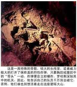 ![]() 這是一具特殊的骷髏,碩大的頭顱里,裝著威力极大的打開了保險蓋 的烈性炸彈,只要胸腔或腹腔中的“骨頭”一動,炸彈便會立即爆炸。羅 哈斯深知其中的机關,因此,他告訴自己的隊員千万別去碰它,否則,他 們誰也別想活著走出這座碧瑤大山。 羅哈斯說許多人,包括總統的母親何塞法,都出价要買這樽佛像。當他拒絕出讓時,10名士兵在一天半夜之點出現在他在碧瑤的家中,他們帶著槍和——張由何塞法的大伯于皮奧·馬科斯法官簽署的搜查令,這些人是國家調查局和保安部隊罪行調查局的特務,他們把佛像裝上卡車運走了,還裝走了羅哈斯發掘出的其他珠寶,以及18根每根為1×2×3英寸的金條。羅哈斯根本沒料到會遭到搶劫。帶領這批人前來搜查的是總統的妹夫馬塞利諾·巴爾巴,他是馬科斯最小的妹妹福圖娜“小”馬科斯的丈夫。 時間是1970年,菲律賓探險家協會主席羅赫利奧·羅哈斯開始尋找山下奉文藏金。有關羅哈斯的資料并不多見,我們只知道他是一個鎖匠和業余探寶員。開始尋找下山奉文藏金的時候,羅哈斯已經50余歲了。他是一個做事精益求精的人,性格較為溫和,不大喜歡冒險(命運卻讓他作了菲律賓探險家協會的主席)。可是,當他拿到了一張日本人的藏寶圖之后,他再也抑制不住探險的念頭了,他決心按照圖紙上標出的地點,把那里的寶物挖出來:羅哈斯并非一個貪財的人,從很大程度上說,他之所以想去冒一冒險,主要是想体現一下他作為業余探寶員的价值,体現一下他作為菲律賓探險家協會主席的能力。 羅哈斯的這張圖紙是從哪里來的呢?這話需得從他父親說起。 羅哈斯的父親在二戰時期是一個商人,專做緊缺物資的生意,比如說,當大米奇缺的時候,他便大量出售大米,當淡水奇缺的時候,他便銷售淡水,最為奇怪的是,當軍火缺乏的時候,他竟也能銷售軍火。他是當時菲律賓最有實力的商人之一。這樣一來,就不能不引起儿玉譽士夫的注意,儿玉譽土夫要拉攏他活動范圍內各個國家的這類人物,就像他在中國拉攏杜月笙和顧氏兄弟一樣,他在菲律賓的一個重要目標就是羅哈斯的父親。誰知羅哈斯的父親是一一個民族主義者,民族主義思想在他的頭腦中根深蒂固,他不愿意与儿玉譽士夫合作。他所出售的軍火,也大都是賣給美國人或者菲律賓游擊隊,基本上不賣給日本人。岩淵和山下奉文都曾找他買過軍火,且出的价錢,比美國人的价錢高出一倍多,可是,他堅決不動心。但是,這并不是說他就從來也不跟山下奉文和儿玉譽士夫等人合作,只不過,他們合作的項目,大多是一些生活用品。為了跟這個頑固而又具有廣泛號召力的菲律賓人搞好關系,儿玉譽士夫和山下奉文都曾將其待為責賓。不過,他的結局則是被日本人暗殺于二戰結束之前。 我們有理由相信,羅哈斯的那張藏寶圖,便是他父親當年從日本人那里弄來的。他父親得到這張藏寶圖的手段,很大可能是利用他進入儿玉譽士大或者山下奉文辦公室的時候,順手牽羊;另一种可能性則是日本人為了拉攏他而特意“送”給他的,但是,這不代表一种普遍的觀點。 羅哈斯的父親肯定沒有在死前把這張藏寶圖交給儿子,許多資料證明,羅哈斯是在60年代晚期才相信有山下奉文藏金的,很有可能是在那時候他才從父親的遺物中發現了這張藏寶圖。不管怎么說,羅哈斯有了一張日本人的藏寶圖,隨后,他就開始了小心翼翼的挖掘。在事情成功之前,他不想張揚,他是一個單干分子。 据羅哈斯說,藏寶圖上標出的是碧瑤附近本格特礦坑中的一個埋藏點。從3月份開始,羅哈斯便不斷地深入到碧瑤山中,包里挎著一個老式探測器,有計划地進行著精确的測量。為此,他花了几個月的時間,但他終于找到了,一旦把地點确定下來后,他知道單靠自己一個人的力量是不行的,于是他招募了10多個人。但正是他的這一招募行動,使他被馬科斯手下的人盯上了梢。 羅哈斯的人挖了7個月之久,終于見出成效。 他們進入了一個到處散落著人骨的山洞。 由于有了圖紙的指引,加上羅哈斯小心謹慎的性格,他們一路上避開骷髏陣設置的各种机關,沒有遇到什么危險。 但是,當他們就要接近寶物的時候,卻遇到了一具特殊的骷髏。這具骷髏沒有腿,腹腔里奇怪地伸出一根螺旋形的柱子,胸腔部分呈“V”字形的兩根有低淺凹槽的骨頭,直通兩肩的鎖骨,頭顱奇大。羅哈斯敏銳地發現這具骷髏的結构有別于普通的人骨,當年那些日本人肯定在上面作過特殊的加工。于是,他讓手下人不忙著去動他。自己則站在一米開外,用他的探測器小心翼翼地進行試探。如果探測到的是人骨,探測器會發出“嘟嘟嘟”的叫聲,可是,當他把探測器的尖嘴放在腹腔部位那很螺旋形的柱子上時,什么動靜也沒有。羅哈斯确信這不是人骨,有些緊張,對手下說:你們誰也不要去動這具特殊的骷髏,否則,誰也別想活著走出這座碧瑤大山!他雖然是因為緊張才說出這樣的話,但并沒有夸張。這的确是一具假骷髏!全身都由不易腐爛的物質組成,碩大的頭顱里,裝著威力极大的打開了保險蓋的烈性炸彈,只要胸腔或腹腔的“骨頭”一動,炸彈立即引爆。 這具假骷髏縱向躺在路中,把路面攔腰阻斷,要想得到寶物,必須通過這道障礙。但是,它4米多長的軀体,使在場的人沒一個敢跨越過去。羅哈斯認真地觀察著洞子,想了許久,終于想出了一個辦法。 他讓人去洞外砍來十來根長長的木棒,扎了一個架子,架