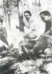 瑪格麗特·杜拉在羅貝爾·昂泰爾姆(右面)和迪奧尼斯·馬斯科洛之間(1942年)